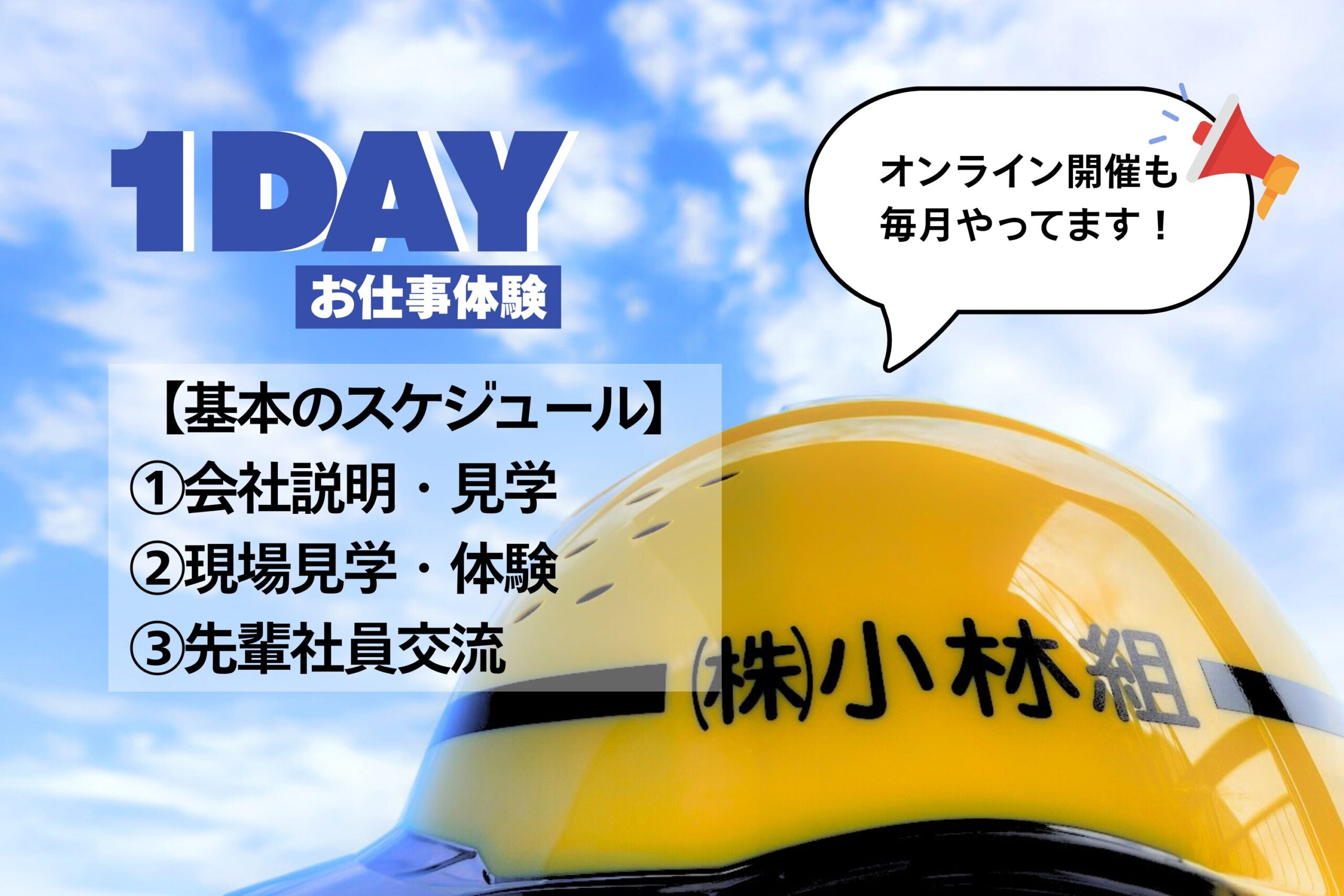 小林組本社で行う対面会社説明会の他に、オンライン会社説明会のどちらかをお選びいただけます。